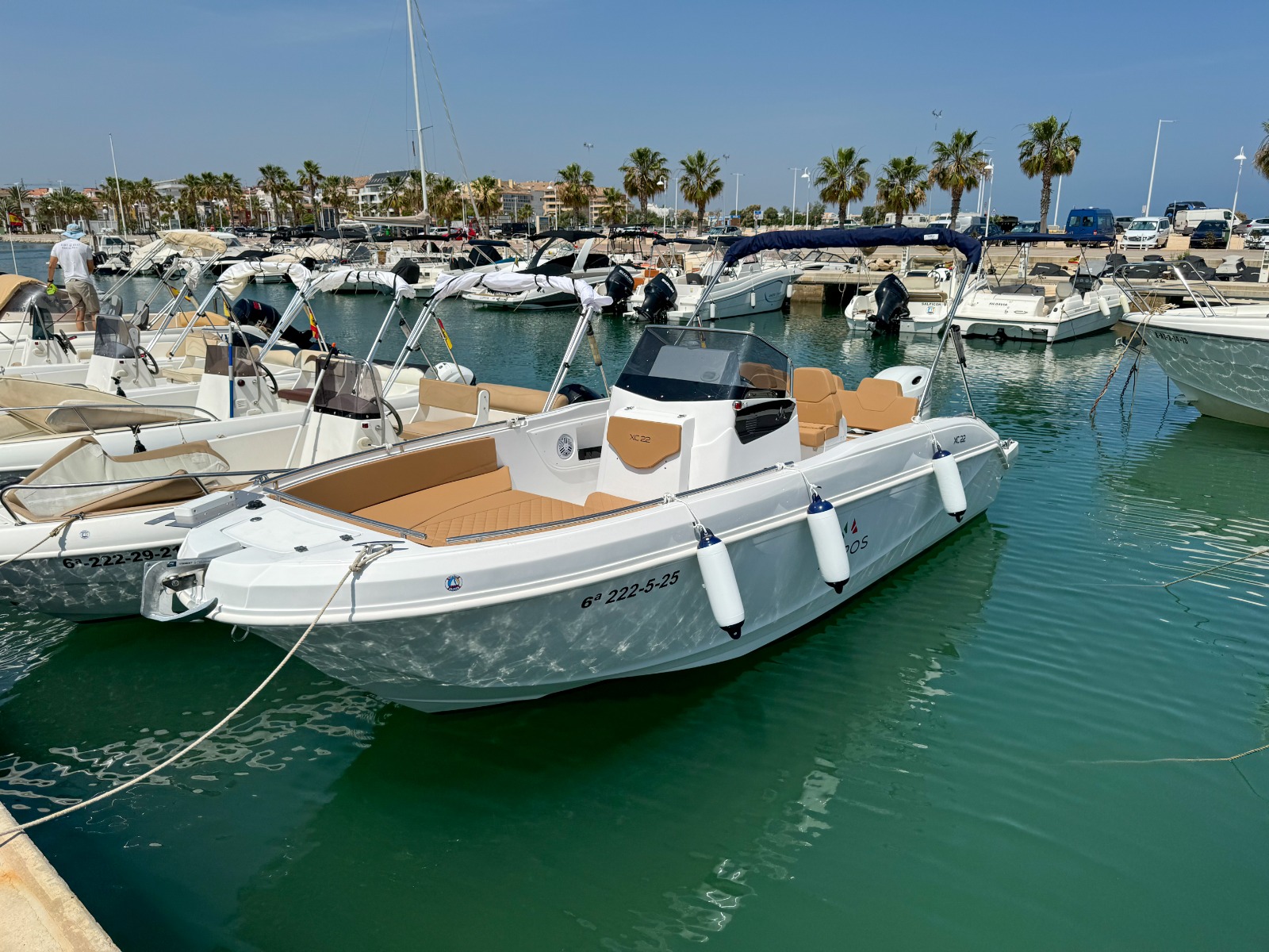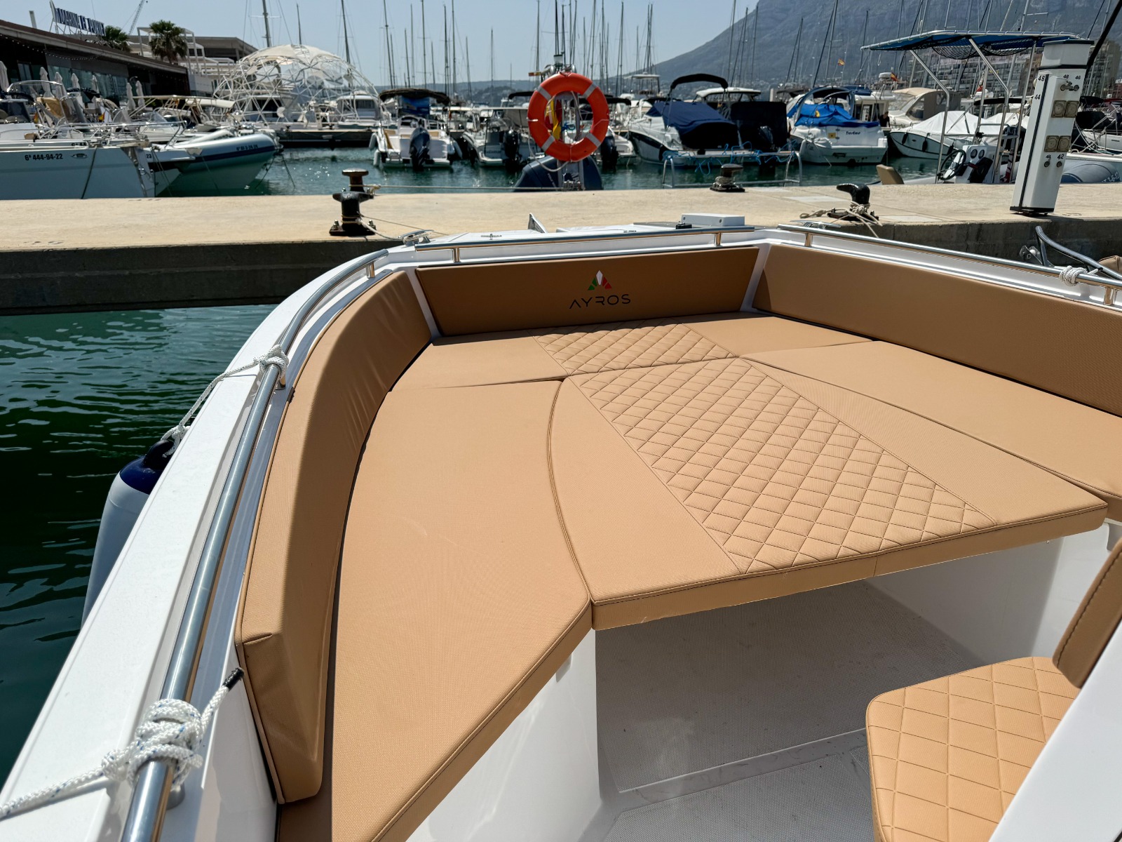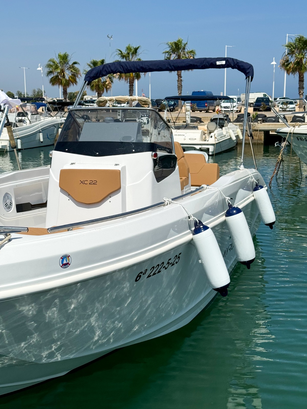 MODELO 2025 Alquiler barco en Denia. TItulo LICENCIA DE NAVEGACIÓN. Alquiler de embarcaciones en Dénia / Rent a Boat in Dénia. Marca AYROS XC22 de 6.00 metros de eslora, equipado con motor SUZUKI de 150 cv. Barco para 8 personas. Dispone de solárium de proa desmontable con colchonetas, plataforma con escalera de baño, mesa desmontable, toldo para el sol, equipo de música FM con Bluetooth, ducha de agua dulce. Opcional alquiler de BARCO CON PATRÓN. Combustible no incluido.