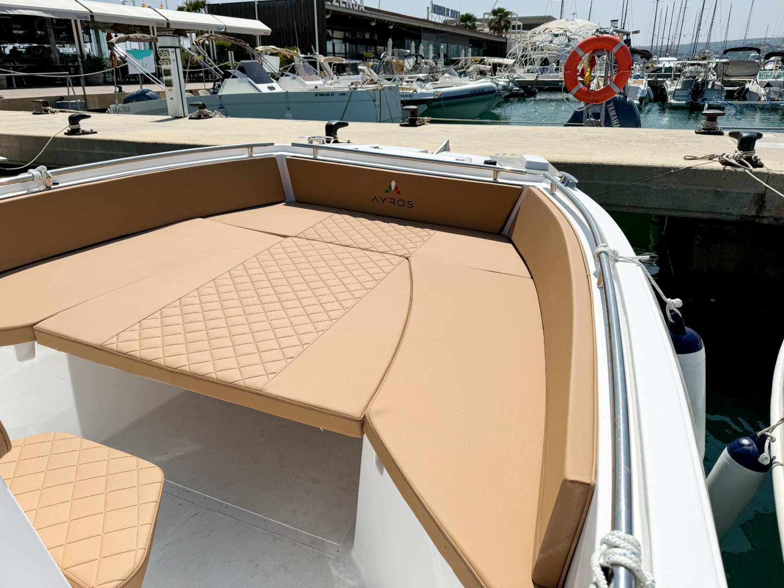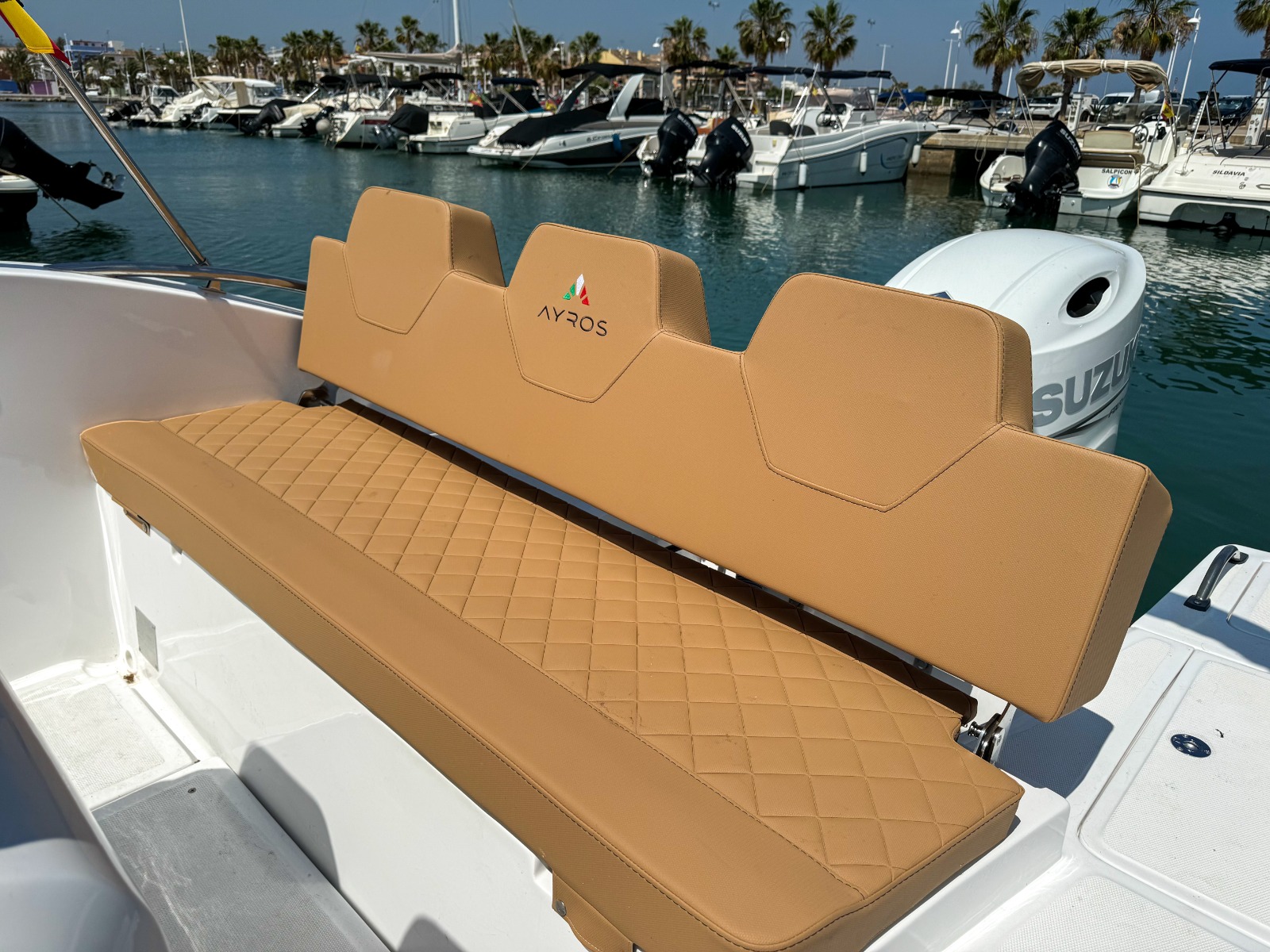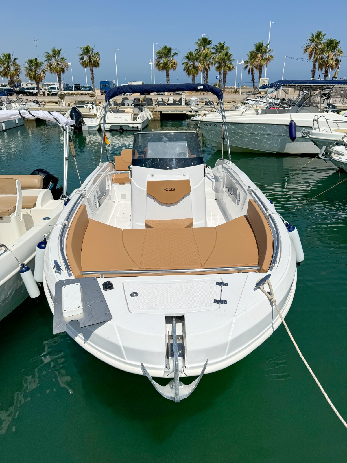 MODELO 2025 Alquiler barco en Denia. TItulo LICENCIA DE NAVEGACIÓN. Alquiler de embarcaciones en Dénia / Rent a Boat in Dénia. Marca AYROS XC22 de 6.00 metros de eslora, equipado con motor SUZUKI de 150 cv. Barco para 8 personas. Dispone de solárium de proa desmontable con colchonetas, plataforma con escalera de baño, mesa desmontable, toldo para el sol, equipo de música FM con Bluetooth, ducha de agua dulce. Opcional alquiler de BARCO CON PATRÓN. Combustible no incluido.