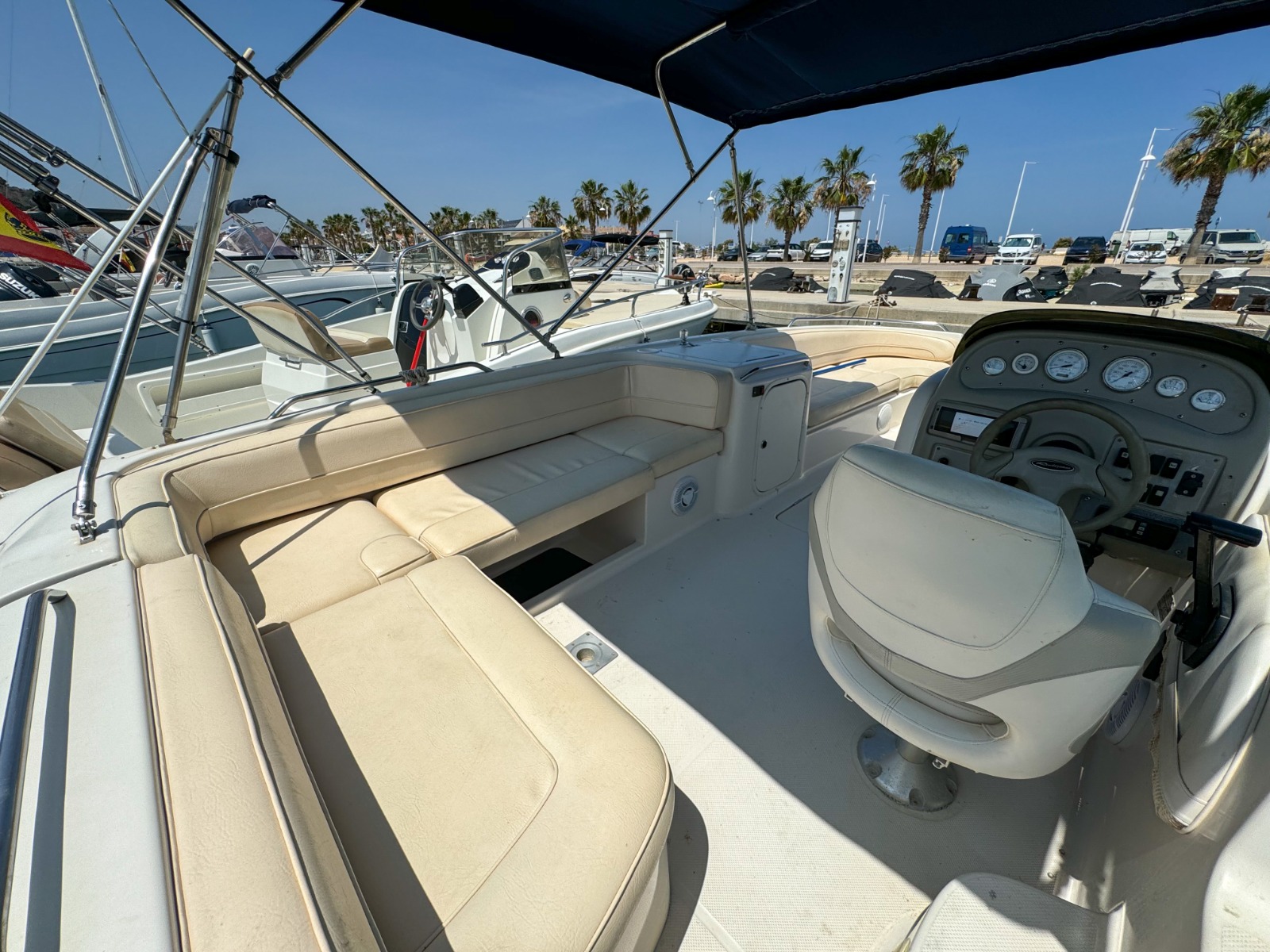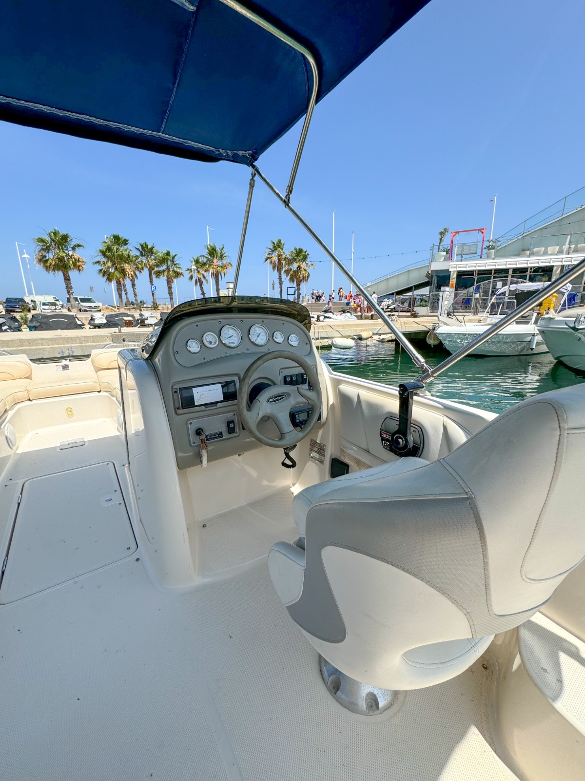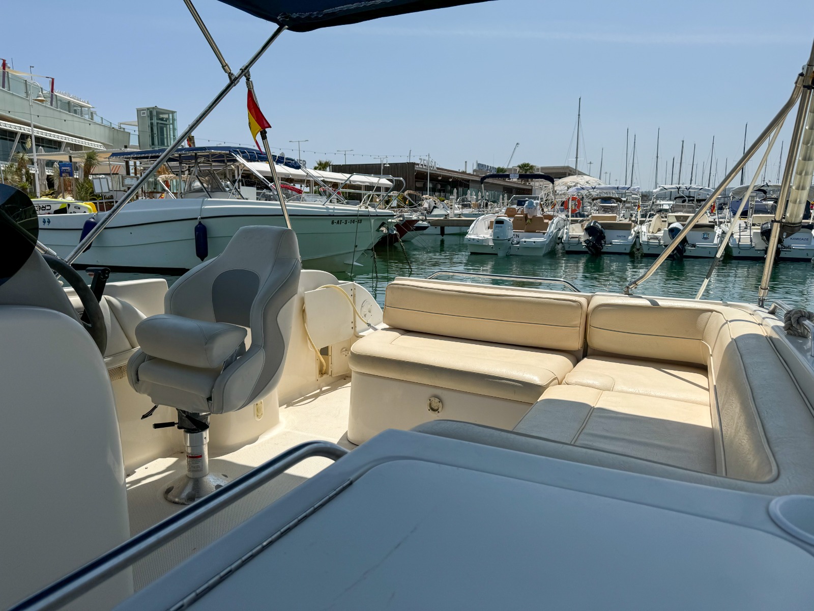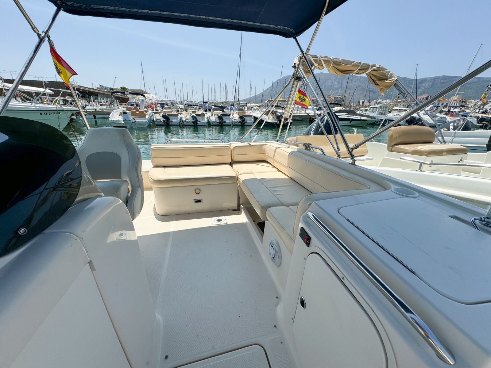Se requiere TITULO DE PATRÓN DE NAVEGACIÓN BÁSICA para su manejo. Alquiler de barcos en Denia / Rent a boat in Denia. BAYLINER con eslora de 6,82 metros, equipada con motor INBOARD de 225 cv. toldo parasol, solárium desmontable en proa y fijo en popa, doble plataforma de baño con escalera, ducha de agua dulce, equipo de música FM con Bluetooth y conexión USB. . Ideal para navegar por la COSTA BLANCA. Alquilamos la EMBARCACIÓN CON PATRÓN si no poseen de la licencia náutica. Combustible no incluido.