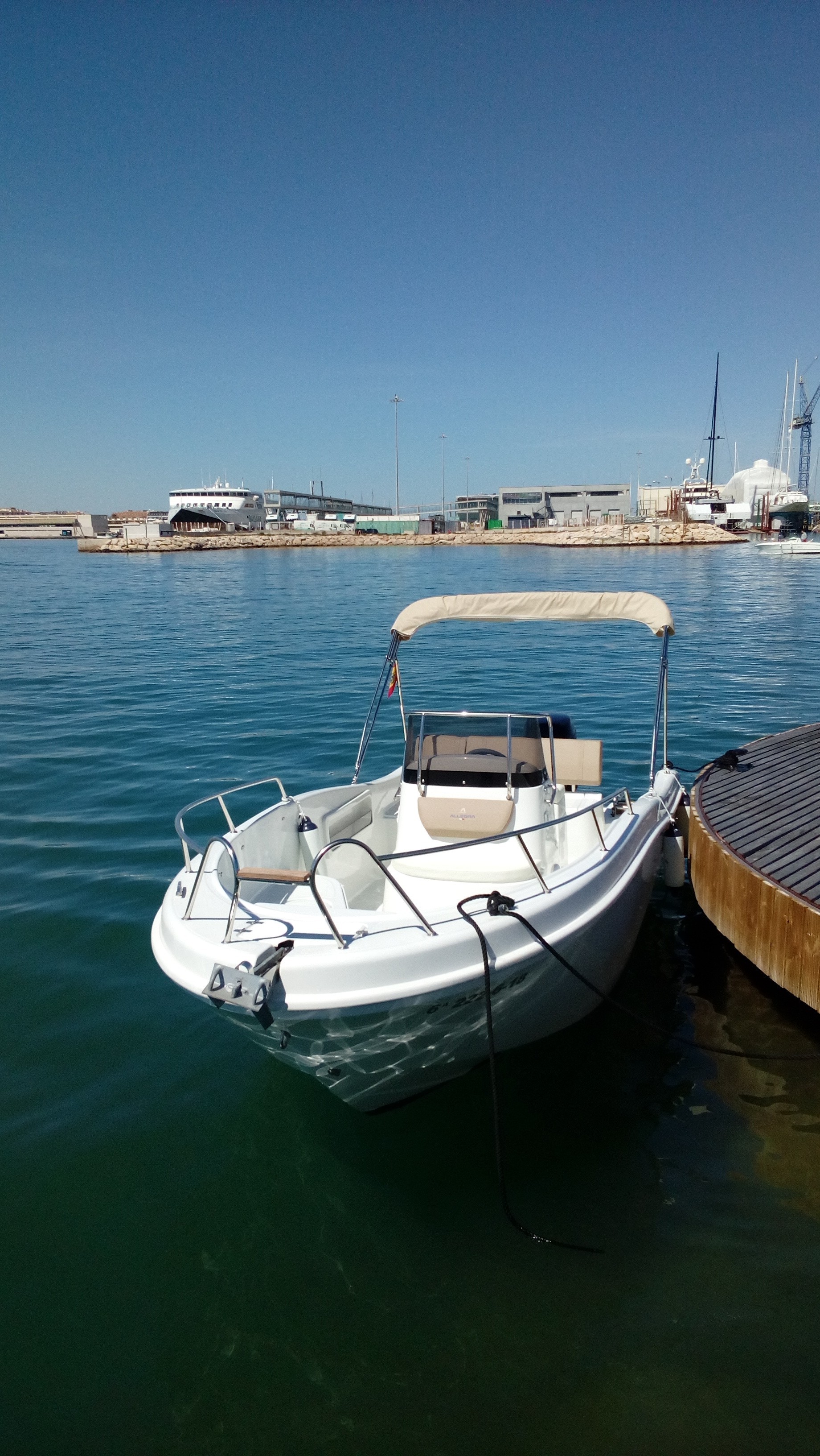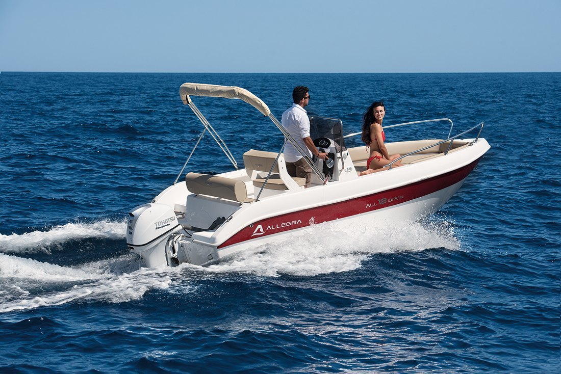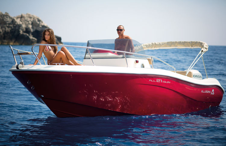 Alquiler barco en Denia con LICENCIA DE NAVEGACIÓN para su manejo. Alquiler de barcos en Denia / Rent a boat in Denia. NUEVO barco ALLEGRA 19 Sun de 5,75 metros de eslora, Equipado con motor SUZUKI de 115 cv. ducha de agua dulce, toldo parasol, escalera de baño, depósito de combustible de 70 litros, amplio solárium en proa. Con capacidad para 6 personas. Disfruta desde el mar la Costa Blanca. Además podrás realizar actividades acuáticas desde la embarcación. Alquilamos la EMBARCACIÓN CON PATRÓN si no poseen de la licencia náutica. Combustible no incluido en el precio.