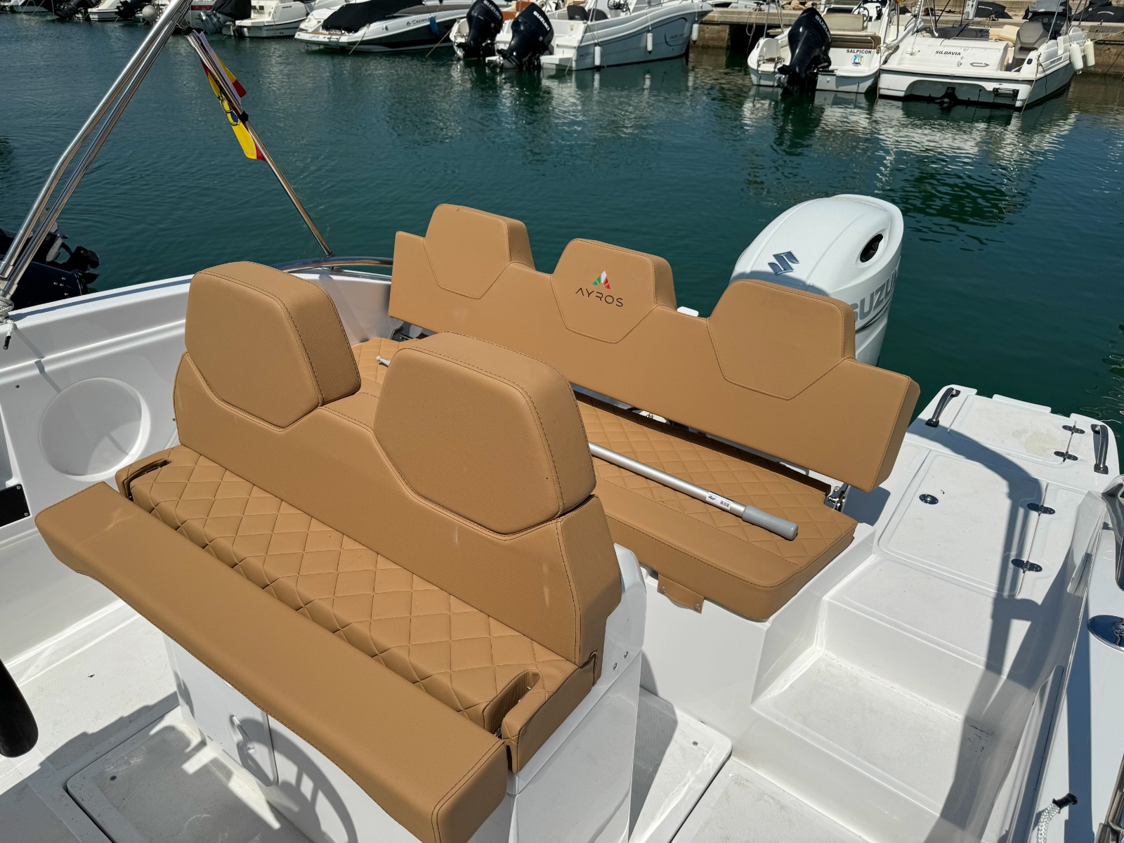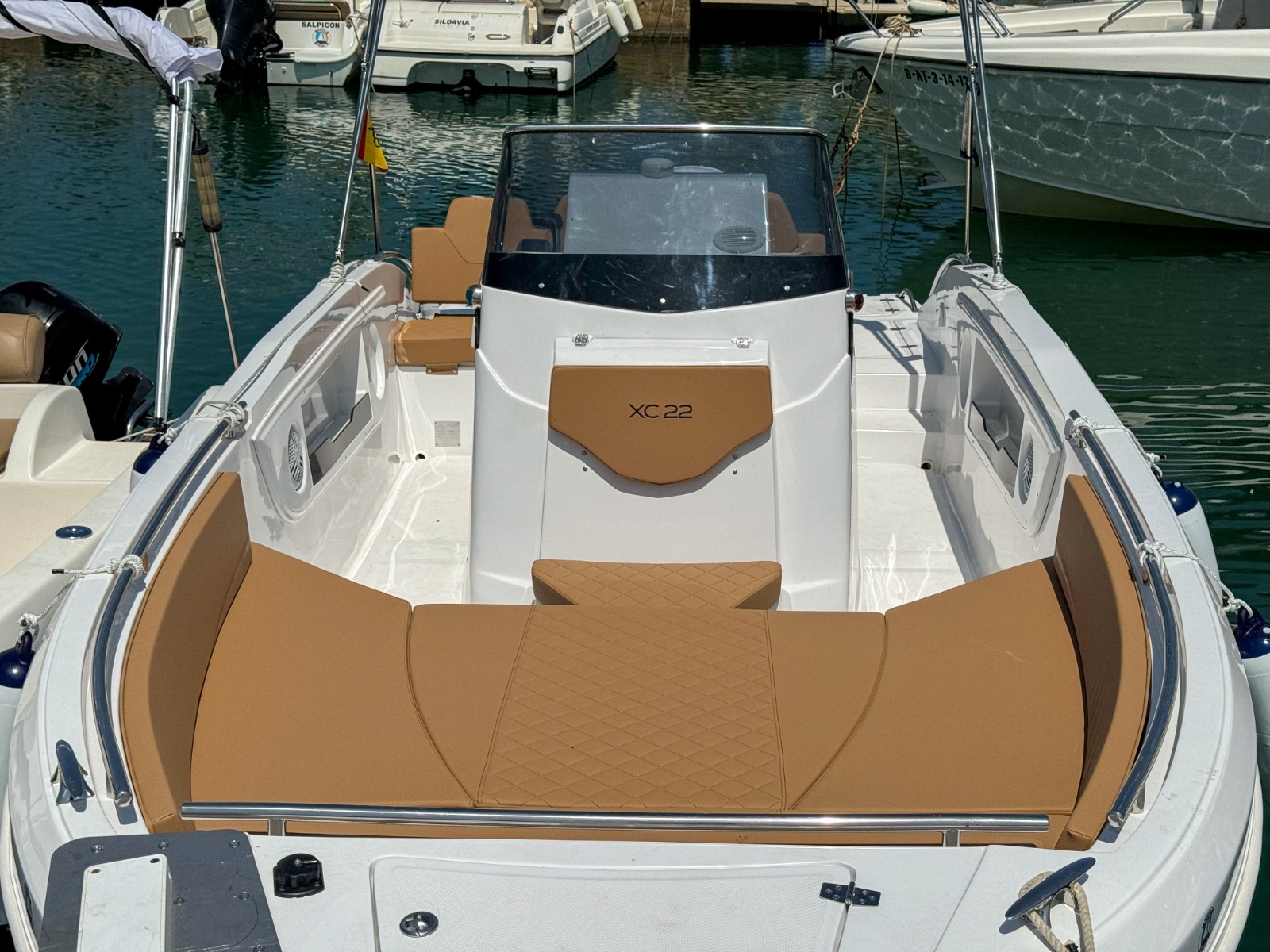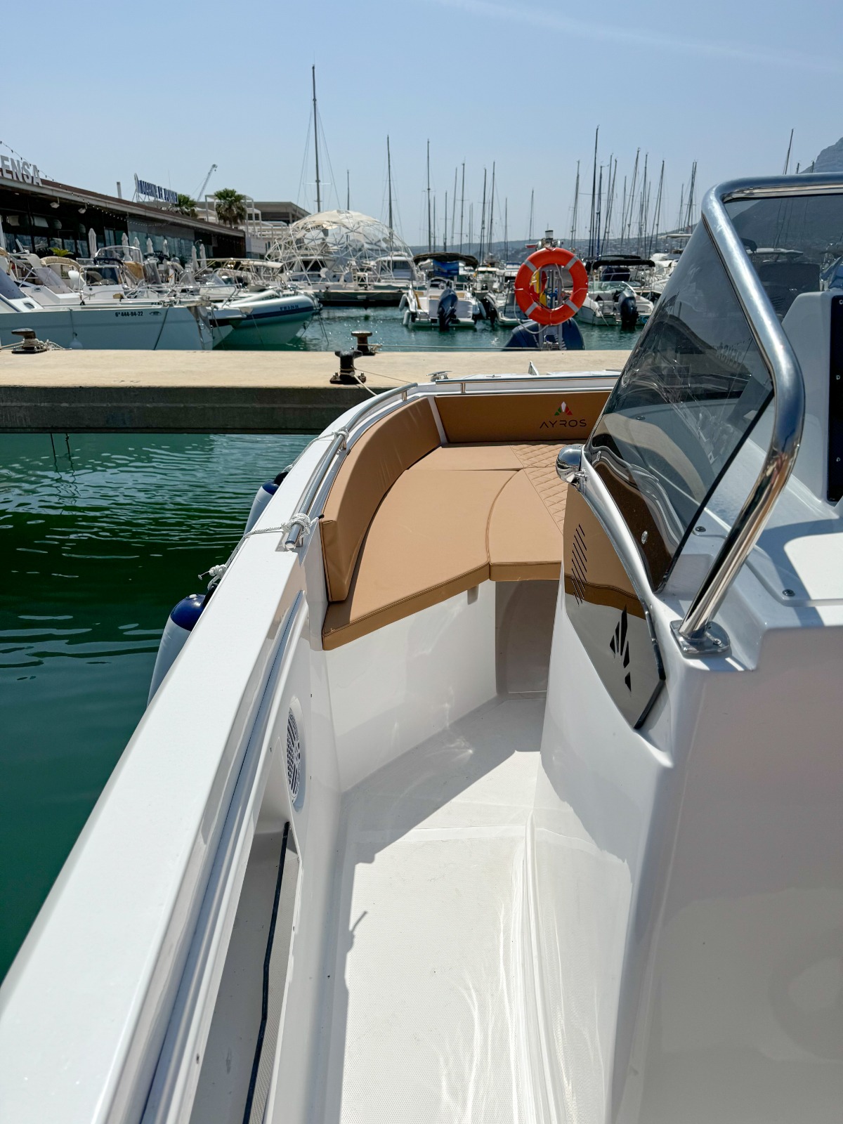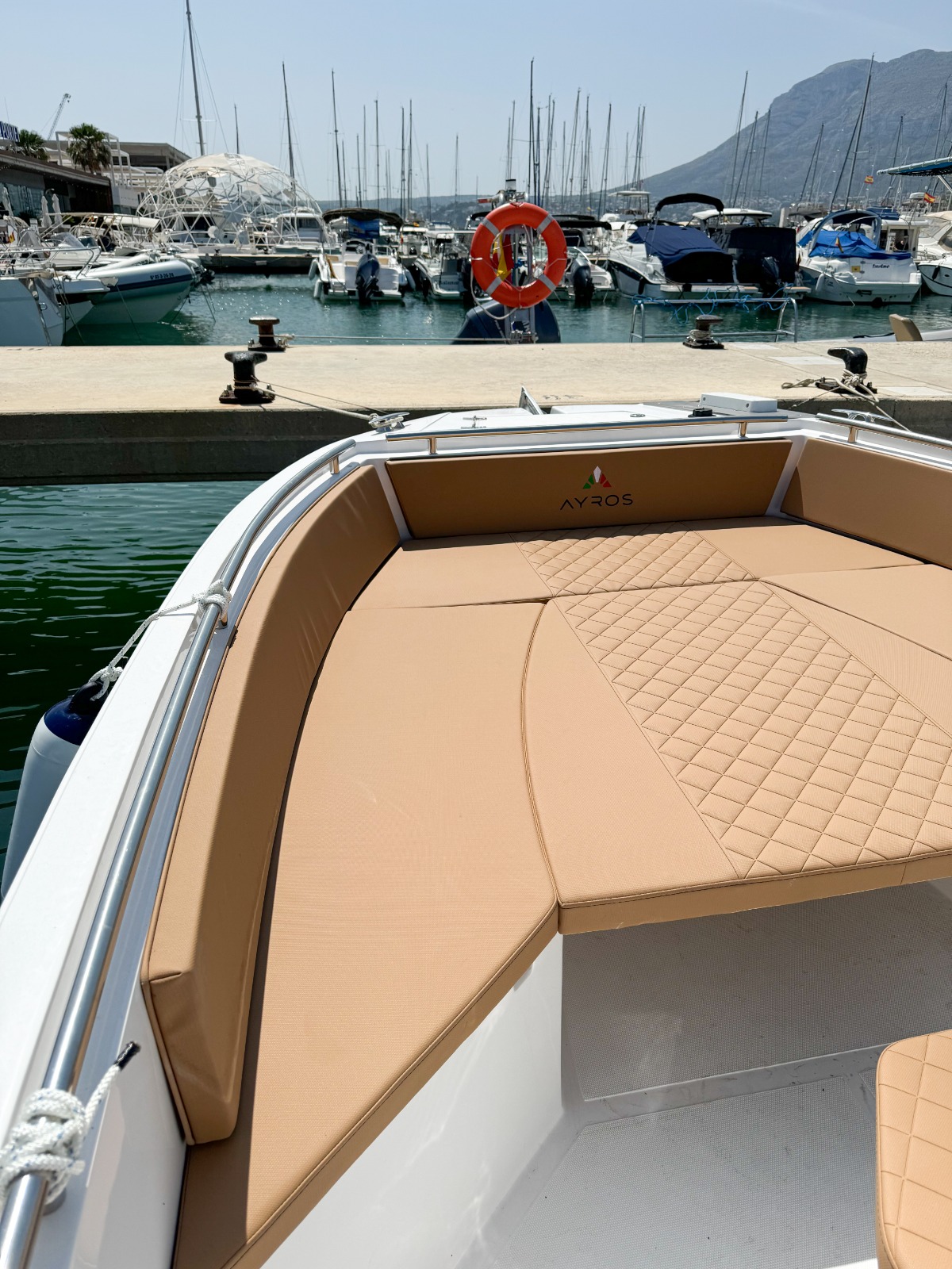 MODELO 2025 Alquiler barco en Denia. TItulo LICENCIA DE NAVEGACIÓN. Alquiler de embarcaciones en Dénia / Rent a Boat in Dénia. Marca AYROS XC22 de 6.00 metros de eslora, equipado con motor SUZUKI de 150 cv. Barco para 8 personas. Dispone de solárium de proa desmontable con colchonetas, plataforma con escalera de baño, mesa desmontable, toldo para el sol, equipo de música FM con Bluetooth, ducha de agua dulce. Opcional alquiler de BARCO CON PATRÓN. Combustible no incluido.
