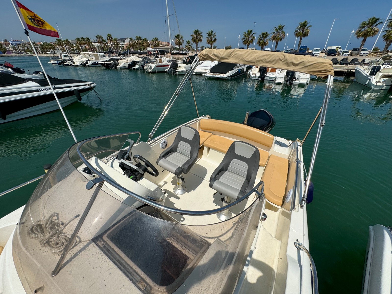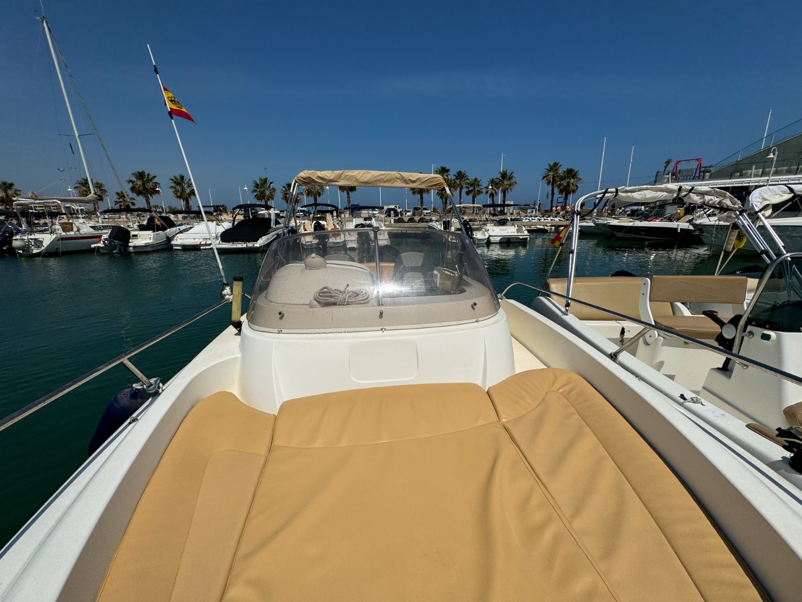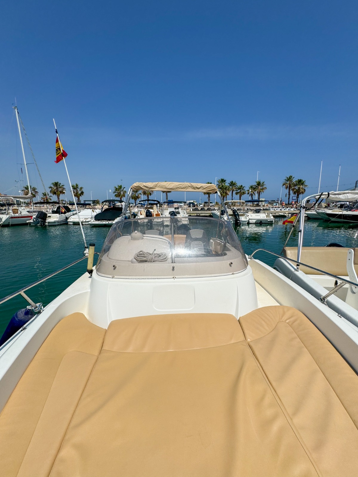 Se requiere TITULO DE PATRÓN DE NAVEGACIÓN BÁSICA para su manejo. Alquiler de barcos en Denia / Rent a boat in Denia. BAYLINER con eslora de 6,82 metros, equipada con motor INBOARD de 225 cv. toldo parasol, solárium desmontable en proa y fijo en popa, doble plataforma de baño con escalera, ducha de agua dulce, equipo de música FM con Bluetooth y conexión USB. . Ideal para navegar por la COSTA BLANCA. Alquilamos la EMBARCACIÓN CON PATRÓN si no poseen de la licencia náutica. Combustible no incluido.