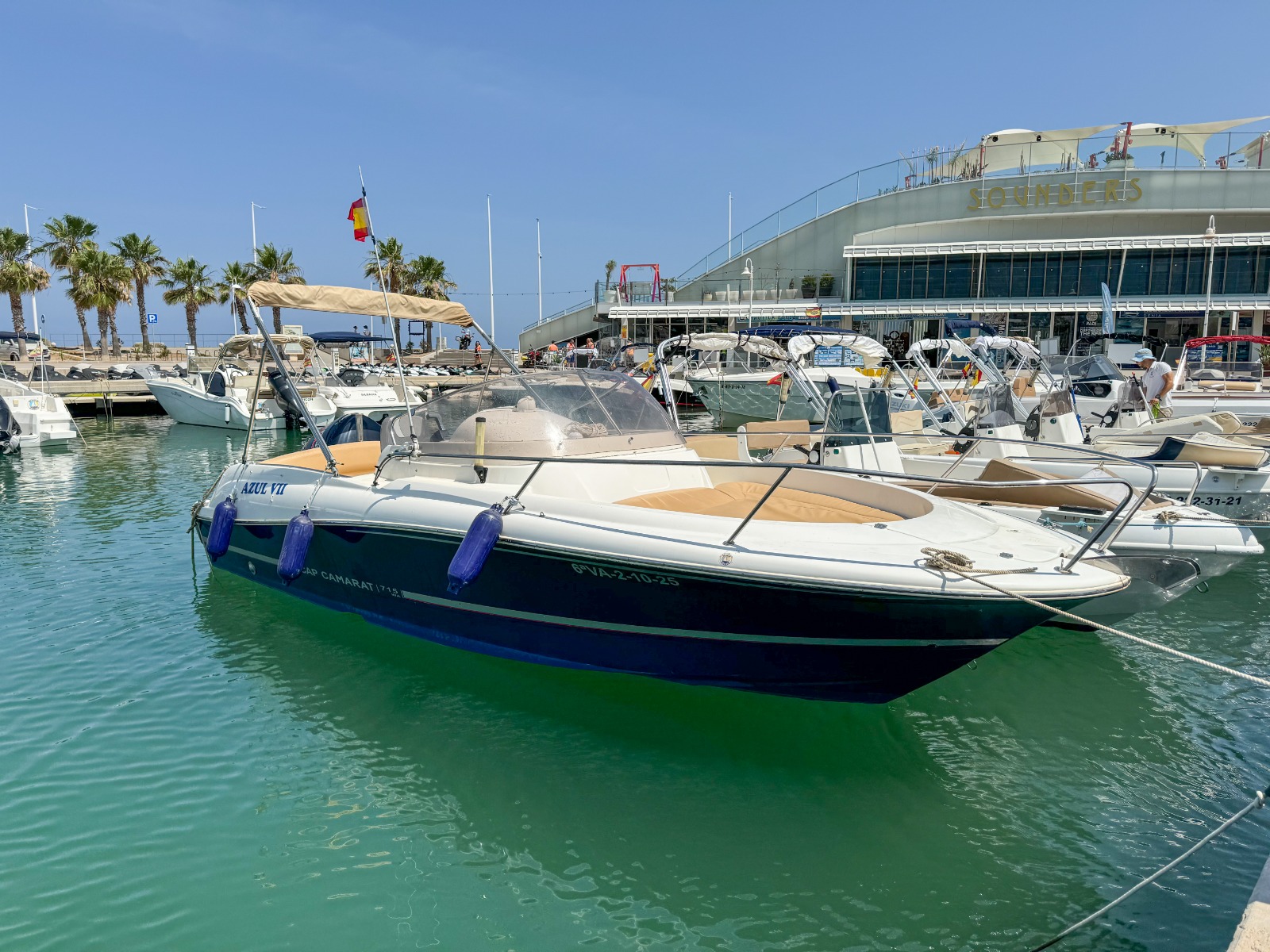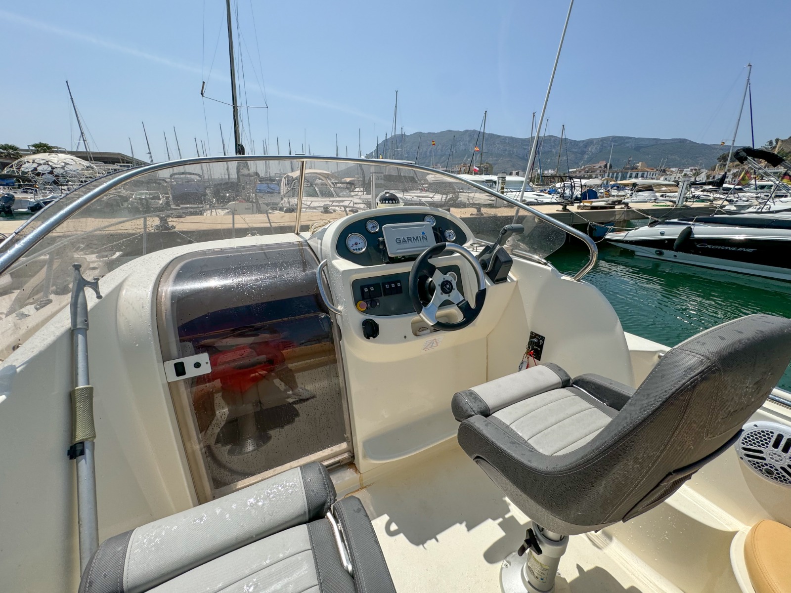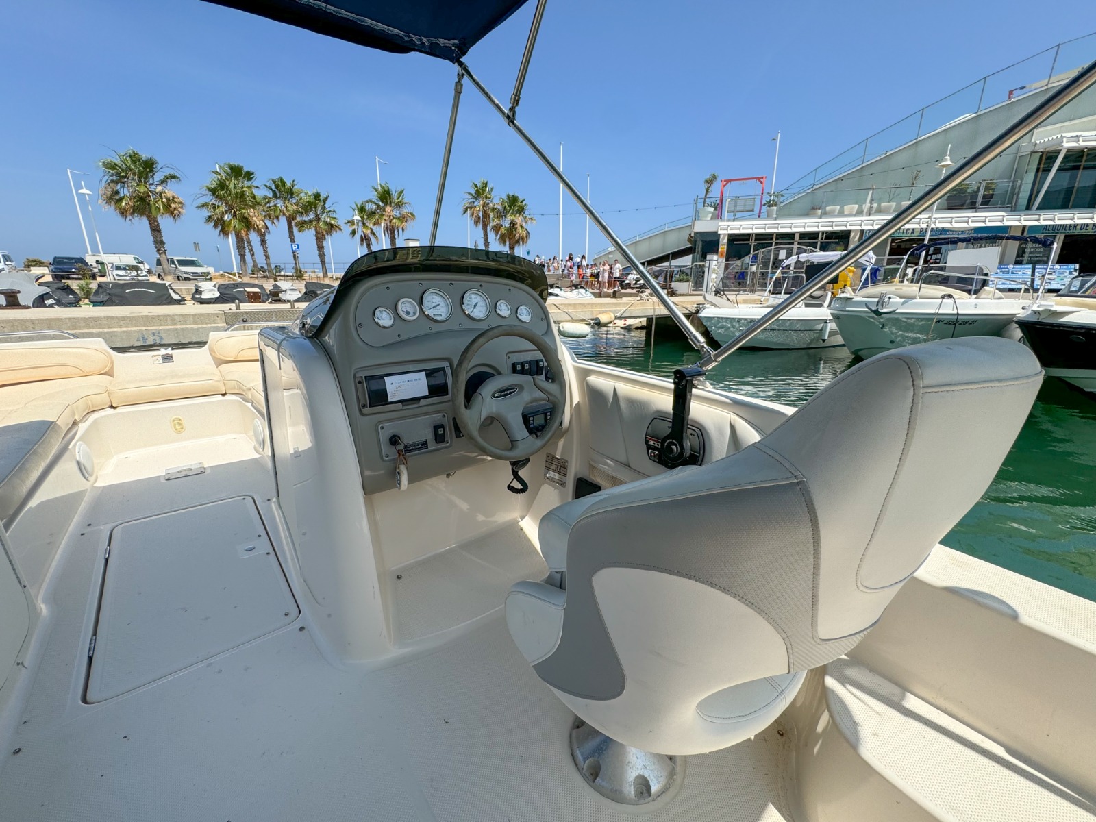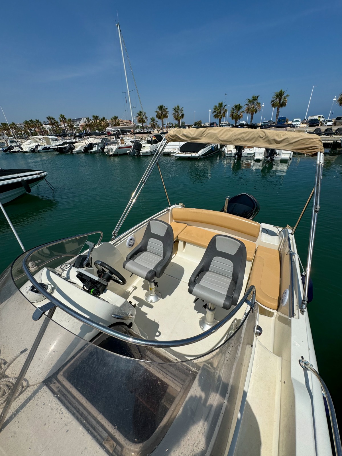 Se requiere TITULO DE PATRÓN DE NAVEGACIÓN BÁSICA para su manejo. Alquiler de barcos en Denia / Rent a boat in Denia. BAYLINER con eslora de 6,82 metros, equipada con motor INBOARD de 225 cv. toldo parasol, solárium desmontable en proa y fijo en popa, doble plataforma de baño con escalera, ducha de agua dulce, equipo de música FM con Bluetooth y conexión USB. . Ideal para navegar por la COSTA BLANCA. Alquilamos la EMBARCACIÓN CON PATRÓN si no poseen de la licencia náutica. Combustible no incluido.