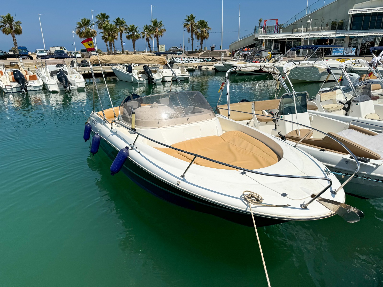 CON LICENCIA Alquiler barco en Denia. Se requiere LICENCIA DE NAVEGACIÓN. Alquiler de lanchas en Dénia / Rent a Boat in Dénia. Nueva adquisición de barco WA de 6,00 metros con motor SUZUKI de 150 cv. Embarcación autorizada para 8 personas. Dispone de amplio solarium en proa, molinete de ancla, dos plataformas de baño con escalera, toldo para el sol de gran dimensión, equipo de música FM con Bluetooth y conexión USB, ducha de agua dulce, deposito de combustible de 200 lt. asiento transversal en popa, amplio acceso a la plataforma de baño, la concepción del casco le genera una navegación muy confortable. Alquilamos el BARCO CON PATRÓN / SKIPPER si no poseen de licencia náutica. Combustible no incluido.