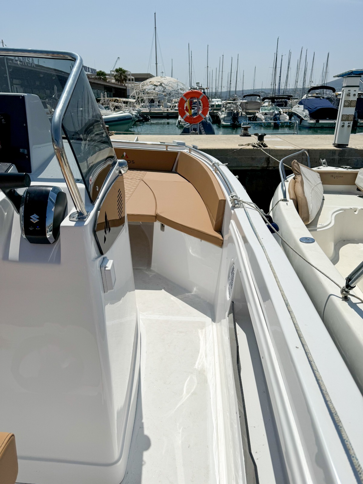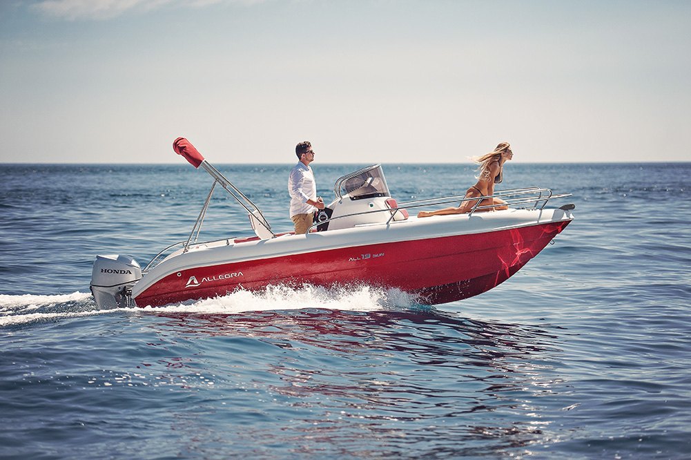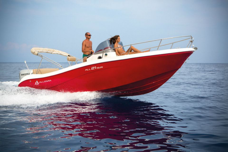 Alquiler barco en Denia con LICENCIA DE NAVEGACIÓN para su manejo. Alquiler de barcos en Denia / Rent a boat in Denia. NUEVO barco ALLEGRA 19 Sun de 5,75 metros de eslora, Equipado con motor SUZUKI de 115 cv. ducha de agua dulce, toldo parasol, escalera de baño, depósito de combustible de 70 litros, amplio solárium en proa. Con capacidad para 6 personas. Disfruta desde el mar la Costa Blanca. Además podrás realizar actividades acuáticas desde la embarcación. Alquilamos la EMBARCACIÓN CON PATRÓN si no poseen de la licencia náutica. Combustible no incluido en el precio.